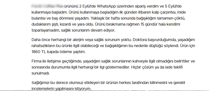 Yine de TikTok başta olmak üzere pek çok platformda zayıflama kahvesini 21 gün boyunca içmek akım haline geldi. Kullanıcılar ölümle sonuçlanacak bu kahveyi 21 gün boyunca içmeye devam ediyor. Faydasını gördüklerini iddia ettikleri ürünü öneriyor...