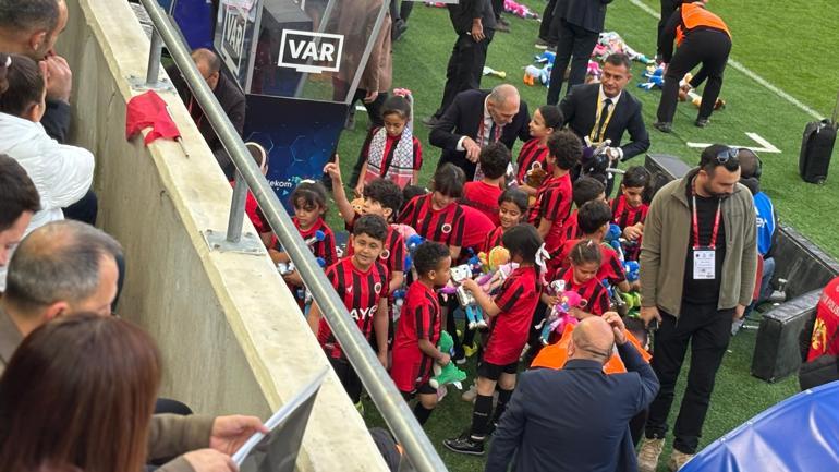 Maç başlamadan hemen önce ise Filistinli çocuklara gönderilmesi planalan peluş oyuncakları sahaya attı. Ayrıca Gençlerbirliği ve Konyasporlu futbolcular seremonide Filistinli çocuklarla birlikte sahaya çıktı.