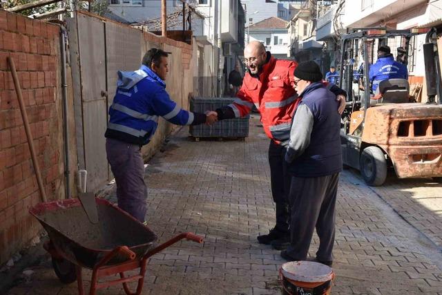 Germencik Belediye Başkanı Zencirci soğuk havaya rağmen özveriyle çalışan belediye ekiplerini ziyaret ederek işçilere çay ikram etti. Sabah saatlerinde İstasyon Mahallesi’nde devam eden yol yapım çalışmasından bir işçinin paylaşımını gördüğünü ifade eden Başkan Zencirci termoslarla çay götürüp işçilere ikram etti.