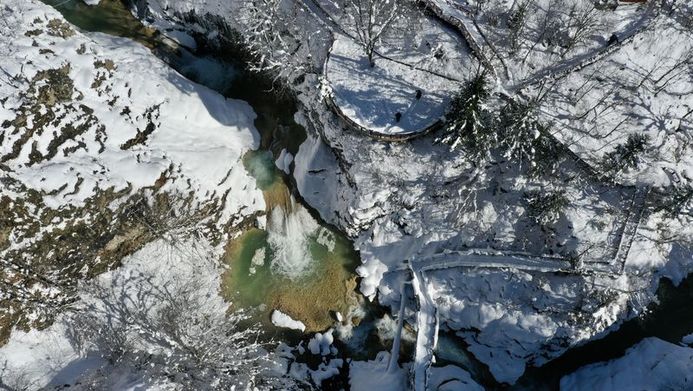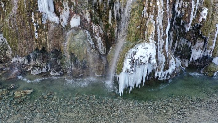 Tabiat parkının önemli değerlerinden 20 metreden Aksu Deresi'ne dökülen Kuzalan Şelalesi de dikkati çekti. Şelalenin alt kısımlarında soğuk havanın etkisiyle buz sarkıtları oluştuğu görüldü.