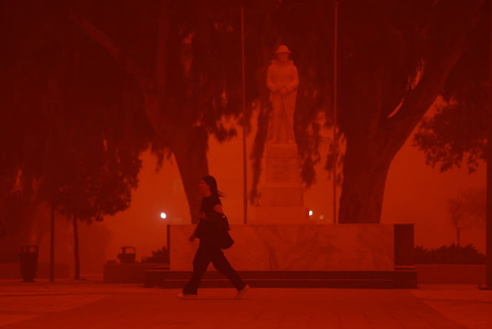 Ülkenin güneyindeki Girit Adası’nda çöl tozu nedeniyle gökyüzü kırmızıya büründü.