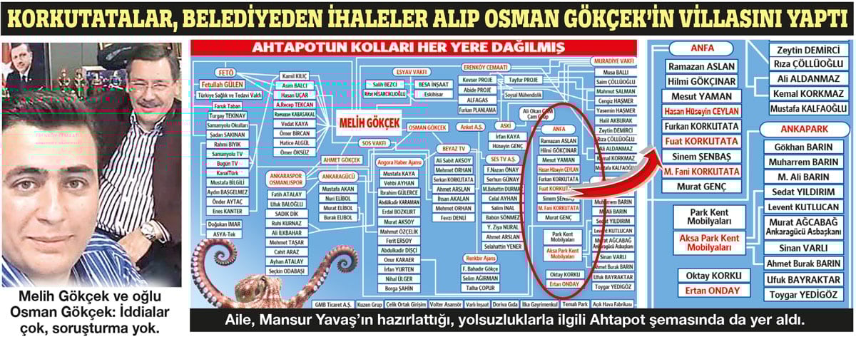 ABB Başkanı Mansur Yavaş’ın eski başkan Melih Gökçek ile ilgili hazırladığı Ahtapot adlı yolsuzluk şemasından Korkutata ailesi de çıktı. Osman Gökçek’e villa arsası tahsis eden Korkutata ailesi ile ilgili yeni bilgiler de açığa çıktı.