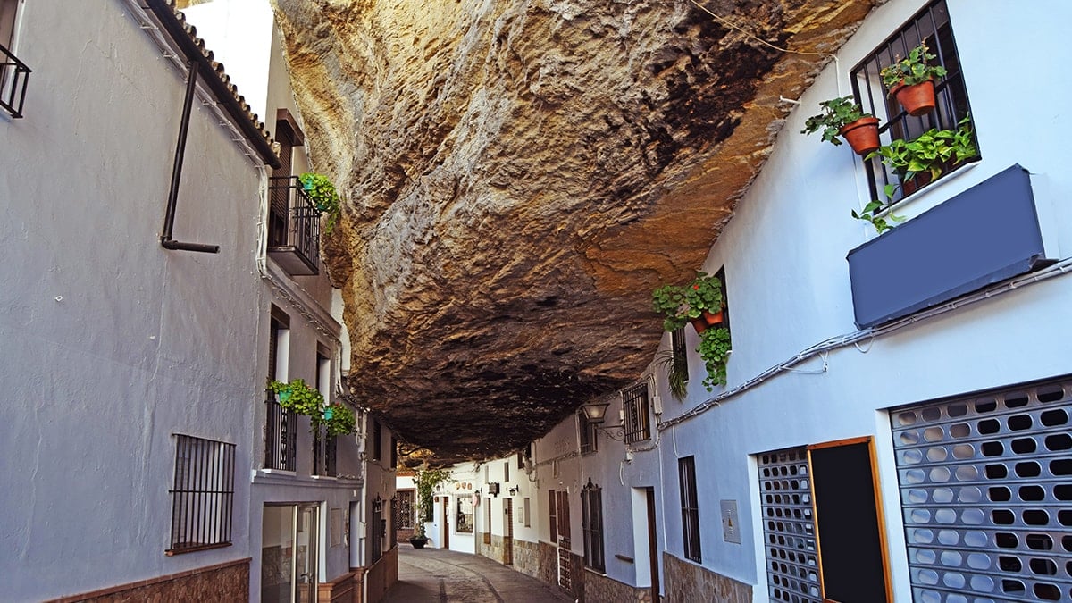 İspanya’nın Endülüs bölgesindeki Cadiz şehrine bağlı Setenil de las Bodegas kasabası, modern şehircilik anlayışının aksine, doğayla iç içe geçmiş sıra dışı mimarisiyle dikkat çekiyor. Trejo Nehri'nin aşındırdığı kanyonun üzerine kurulu olan yerleşim yerinde, evlerin çatıları gökyüzü yerine tonlarca ağırlıktaki devasa kaya kütlelerinden oluşuyor.