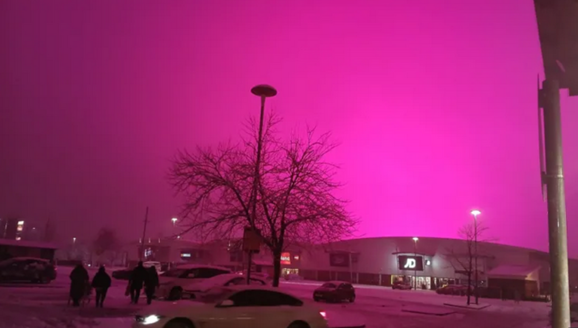 İngiltere'nin Birmingham kenti genelinde Perşembe akşamı nadir görülen bir kar yağışı etkili oldu. Bu sırada gökyüzünü kaplayan gizemli pembe parıltı bölge sakinlerini şaşkına çevirdi.