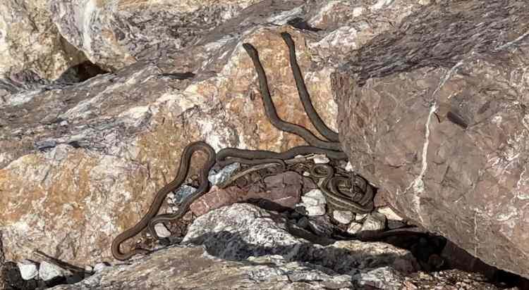 Hakkari’nin Yüksekova ilçe merkezine 20 kilometre uzaklıkta bulunan "Yılan Pınarı" bölgesinde sürü halinde güneşlenen yılanlar, Brezilya’nın "Yılan Adası"nı andırıyor.