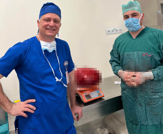 "MESLEK HAYATIMDA İLK KEZ BU BÜYÜKLÜKTE BİR KİTLE ÇIKARDIM" Ameliyatı gerçekleştiren Genel Cerrahi Uzmanı Opr. Dr. Sedat Ocak, "Hastamız karın şişkinliği şikayetiyle bize başvurdu. Yapılan tetkiklerde karın arka duvarından kaynaklanan oldukça büyük bir kitle tespit ettik. Ameliyatta yaklaşık 30 santimetre çapında, çevre organlara baskı yapan bir kitle ile karşılaştık. Titiz bir çalışma ile özellikle karın arka duvarındaki büyük ana damarlara zarar vermeden kitlenin tamamını çıkardık. Ameliyat sonrası hastamızın şikayetleri hızla azaldı. Kitleyi tarttığımızda yaklaşık 10,5 kilo olduğunu gördük. Meslek hayatımda ilk kez bu büyüklükte bir kitle çıkardım. Ameliyatın başarılı geçmesinden dolayı mutluyum" dedi.