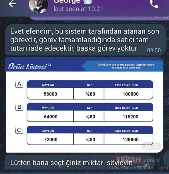 VERGİ BAHANELİ YENİ BİR TUZAKGörevler ilerledikçe İ.Y.'nin uygulama ekranındaki bakiyesi sanal olarak yükseldi. Biriken parayı çekmek isteyen İ.Y. her seferinde yeni görevlerle karşılaştı. Sürecin sonunda hesaptaki paranın 266 bin 700 TL olduğunu belirten dolandırıcılar, parayı çekebilmesi için "vergi ödemesi" gerektiğini talep etti. Şirket bilgilerine dair net bir cevap alamayan İ.Y., dolandırıldığını anlayarak Cumhuriyet Başsavcılığı'na suç duyurusunda bulundu.