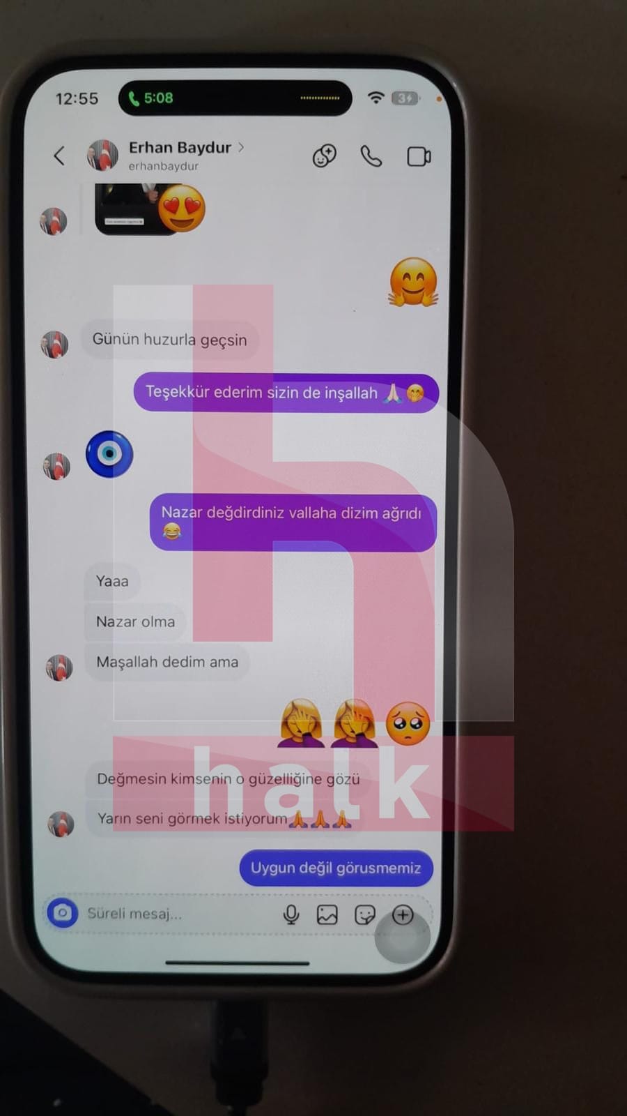 Halktv.com.tr'nin ulaştığı yazışmalarda; görevden alınan Kahramanmaraş İl Millî Eğitim Müdürü Erhan Baydur'un, görüşme talebini "Uygun olmaz" diyerek reddeden bir kadın eğitimciye ısrarlı bir şekilde taciz mesajları gönderdiği görüldü.