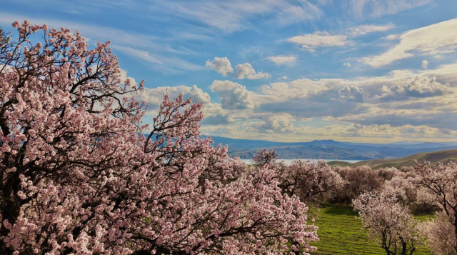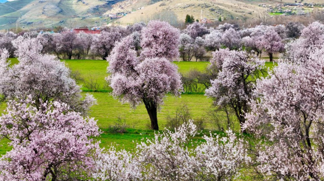 Tunceli’nin Pertek ilçesinde hava sıcaklıklarının artmasıyla birlikte badem ağaçları çiçek açtı. Ortaya çıkan manzara, doğaseverlerin ilgisini çekti.