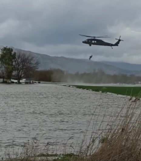 Meteoroloji Genel Müdürlüğü’nün uyarılarının ardından Ege başta olmak üzere birçok bölgede etkili olan sağanak yağış, Aydın’da sele dönüştü. Koçarlı’da Kasaplar mevkisinde yaşayan Abdullah Öpöz, hayvanlarını korumak için çıktığı evinin damında, Büyük Menderes Nehri’nin taşmasıyla çevresi tamamen sularla kaplanınca mahsur kaldı.