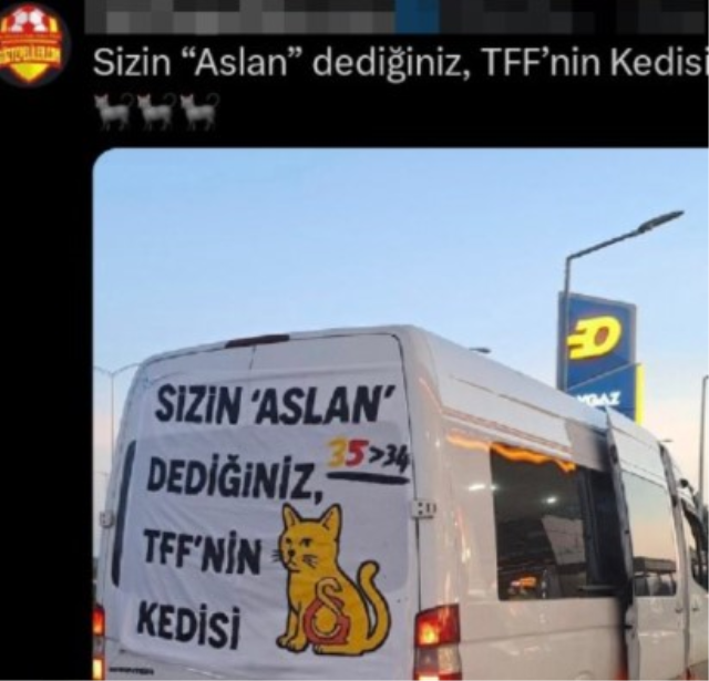 ''SAHADA CEVABINI VERECEĞİZ''Sarı-kırmızılı taraftarlar, kulübün simgesi olan "Aslan" üzerinden yapılan bu yakıştırmaya büyük tepki gösterdi. Pankartın sadece rekabet sınırları içinde kalmadığını savunan Galatasaraylı futbolseverler, karşılığını sahada alınacak galibiyetle verileceğini ifade etti.