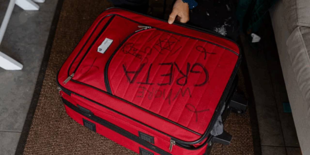 Greta’ya İsrail polisince el konulan bavulu geri verildiğinde üzerinde "Fahişe Greta" yazıldığı, yanına da erkek cinsel organı ile İsrail bayrağı çizildiği görüldü. Greta, "Bavulumu aldılar, Filistin’le ilgili olabileceğini düşündükleri her şeyi çöpe attılar. Her eşyayı tek tek çıkarıp gözümün içine baka baka bıçakla yırttılar. On kişi birden selfie çekiyordu" dedi.