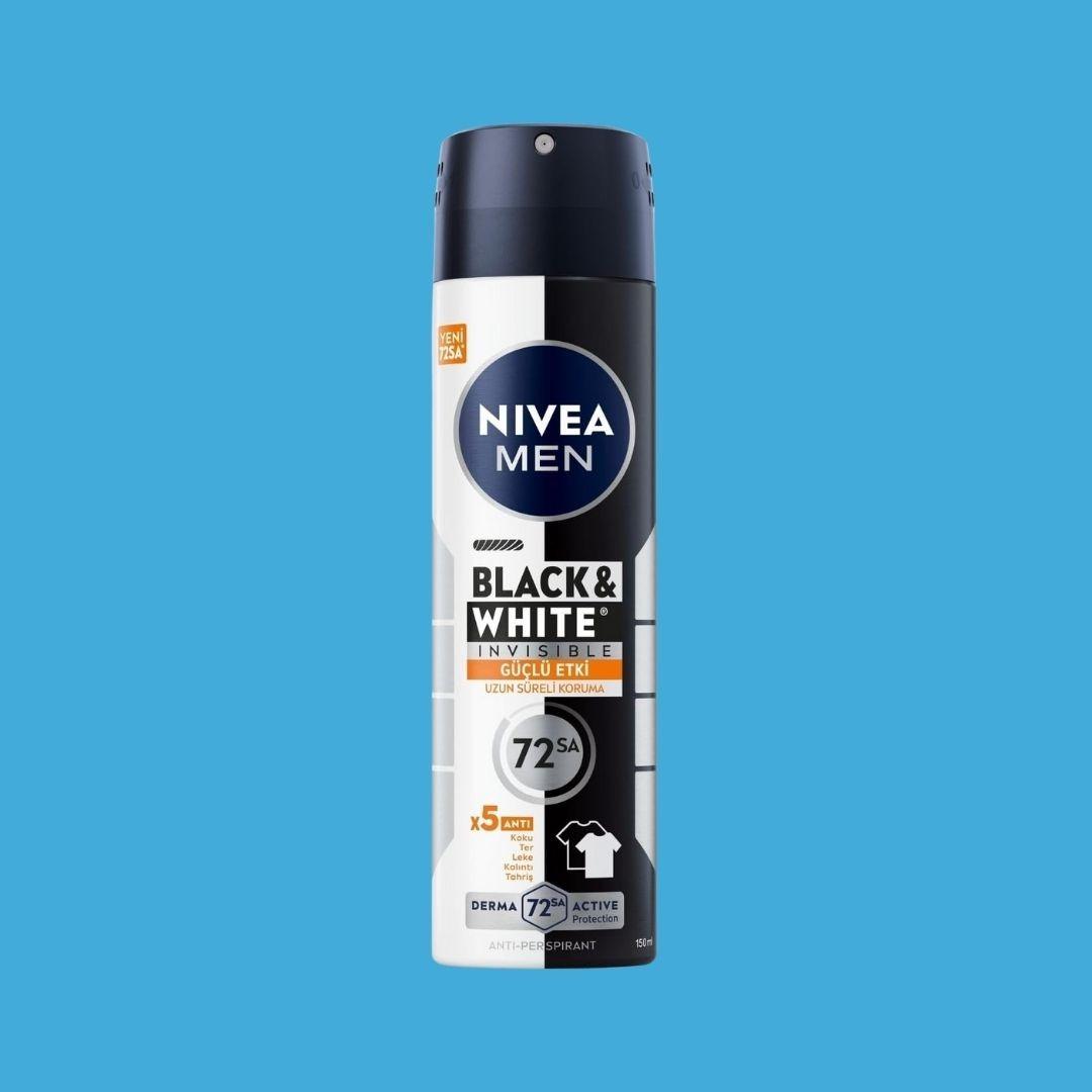 “Sakalım yok yüz için uyguluyorum. Yağlı bir cilt tipim var. Ürünü kullandıktan sonra cildimdeki yağlanmayı giderdi, aşırı kuruluk yapmıyor, gayet güzel dengeledi.” “Ürün çok köpürmüyor. Ama yüzde yarattığı temizlik hissi gerçekten güzel. Kokusu ile birleşince iyi ki almışım diyorsunuz.” Ürünü İncele 15. 72 saat koruma ve kıyafetlerde leke karşıtı etki: NIVEA MEN Black&White Invisible Güçlü Etki Sprey Deodorant (150 ml)