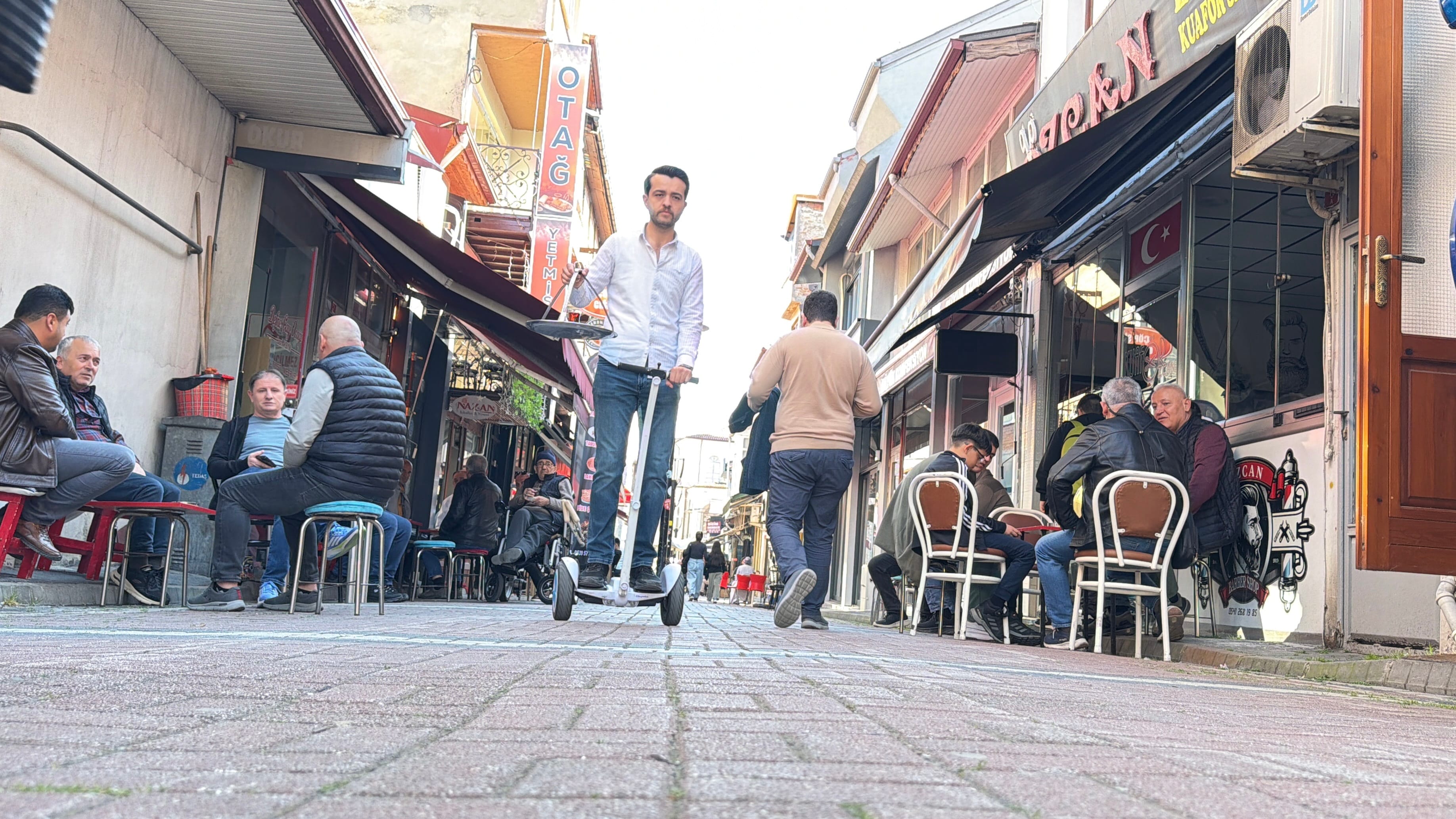"HERKES ÇOK ŞAŞIRDI"Aldığı aracın kendisine büyük kolaylık sağladığını belirten Basri Akbıyık, "Yaklaşık 1 yıldır burada çay ocağını işletiyorum. 300 metre mesafedeki esnafa çay getiriyoruz. Günlük adım sayısınız 25-26 binin üzerinde, bu da bizi yormaya başladı. Biz de bu yöntemi bulduk. Bununla çay dağıtırken, vatandaşlarımız ve esnafımız çok memnun kaldı. Şu anda biz de memnunuz müşterilerimiz de memnun, hoverboard'ı aldıktan sonra artık günlük adım 25 binden 5 binlere kadar düştü. Bununla çay dağıttığımı görenler öncelikle şaşırıyor sonra tebrik ediyorlar. Çünkü bununla hem dengede durup hem de çay tepsisini taşımak zorundasınız, bizim için çok büyük kolaylık oldu. Bu şekilde devam edeceğiz" diye konuştu. (DHA)