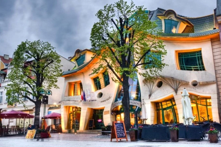 Eğri Ev, Sopot'un en meşhur yaya yolu olan Bohaterów Monte Cassino caddesi üzerinde yer alır. Bu cadde her yıl binlerce turisti ağırlar ve Eğri Ev, tartışmasız caddenin en çok dikkat çeken, en çok selfie çekilen noktasıdır. Eğer bir gün gidersen, binaya sadece gündüz bakma. Akşam ışıklandırmasıyla beraber bina, sanki her an canlanacakmış gibi çok daha fantastik bir görünüme bürünüyor.