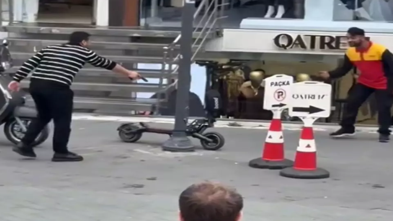 Olay anı çevredeki vatandaşlar tarafından cep telefonu kamerasıyla saniye saniye kaydedildi. Görüntülerde elinde silah bulunan bir kişi ile elinde bıçak bulunan kargo çalışanın birbirlerini uyardığı ve hakaret sonrası silahlı kişinin ateş açtığı anlar yer aldı.