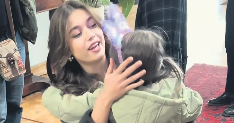 Daha önce 'Yalı Çapkını' dizisinde birlikte oynayan ve iletişimlerini hiç koparmayan ikili eğlenceli dakikalar yaşadı. Saraçoğlu, "İkimizin gözleri de mavi" diyerek kendisine sarılan küçük oyuncuyla oyunlar oynadı.
