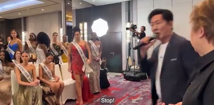 Miss Universe Tayland'ın resmi Facebook sayfasında yayınlanan görüntülerde; Nawat Itsaragrisil, Fátima Bosch'tan kameraların önünde ayağa kalkıp kendini açıklamasını istedi. Meksika Güzeli'nin başkana yarışmadaki arkadaşları önünde azarlanmak istemediğini söylemesi üzerine Nawat Itsaragrisil, "Sana konuşma fırsatı vermedim. Hâlâ konuşuyorum, hâlâ konuşuyorum, dinle!" diye çıkıştı.