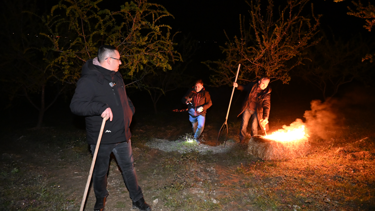 Bu yıl da benzer hadiselerin yaşanmasından endişe eden üreticiler, Meteoroloji Genel Müdürlüğü'nün zirai don uyarısının ardından tarlaya koştu.