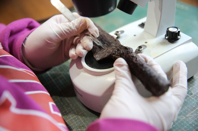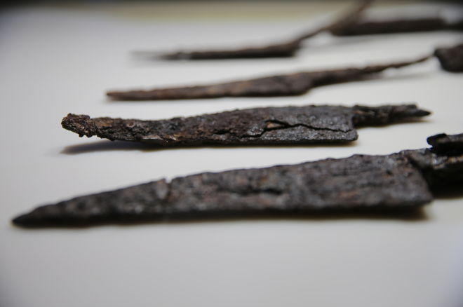 Bıçakların boyutlarının birbirinden farklı olduğunu belirten Çelikbaş, "Tip olarak birbirine çok yakın olduklarını söyleyebiliriz. Dört bıçak ortaya çıktı ve yanlarında da bir bileme taşı da mevcuttu. Bıçaklar ilk çıktığı zaman çok parçalıydı. Yaklaşık 250 civarında parçadan oluşuyordu. Bu parçaları laboratuvarımızda birleştirdik ve bıçakların tekrar aynı formlarına kavuşmasını sağladık" dedi.