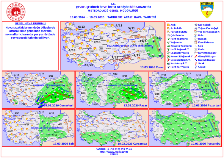 Ancak yurdun doğu kesimleri için uyarılar üst üste geliyor. Doğu Anadolu ve Güneydoğu Anadolu bölgelerinde geniş bir alanda yağış beklenirken, özellikle Güneydoğu'nun doğusunda "kuvvetli yağış" uyarısı yapıldı. Doğu Karadeniz ve Doğu Anadolu’nun yüksek kesimlerinde ise kar yağışı ile birlikte ciddi "çığ tehlikesi" bulunuyor. Ayrıca iç ve doğu bölgelerde gece saatlerinde "buzlanma ve don olayı" bekleniyor.
