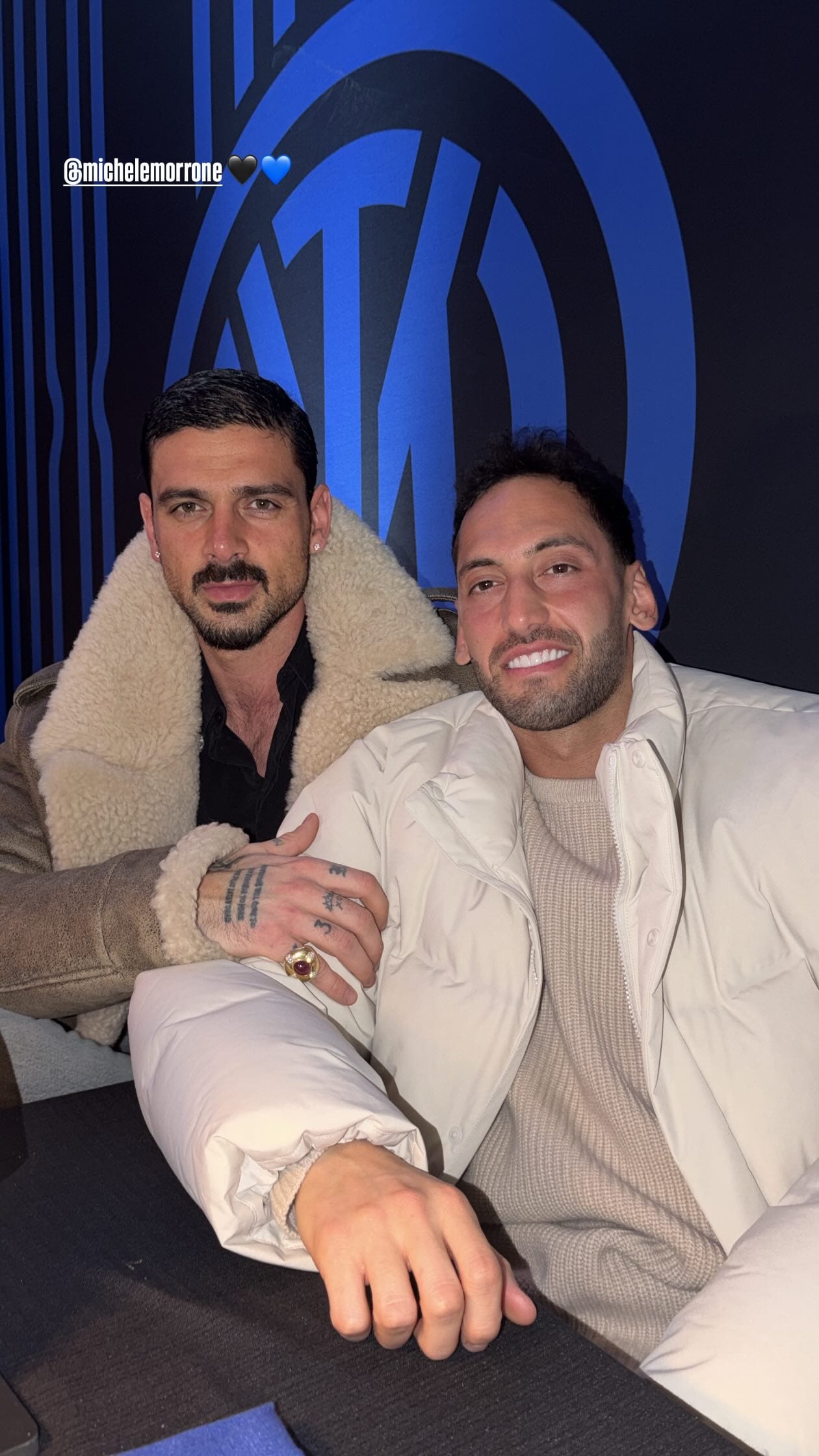 A Milli Futbol Takımı'nın kaptanı, bu sürpriz buluşmaya dair kareyi sosyal medya hesabı üzerinden takipçileriyle paylaştı. Yıldız futbolcu, paylaşımına, Inter'in simge renkleri olan siyah ve lacivert kalp emojilerini de ekledi.