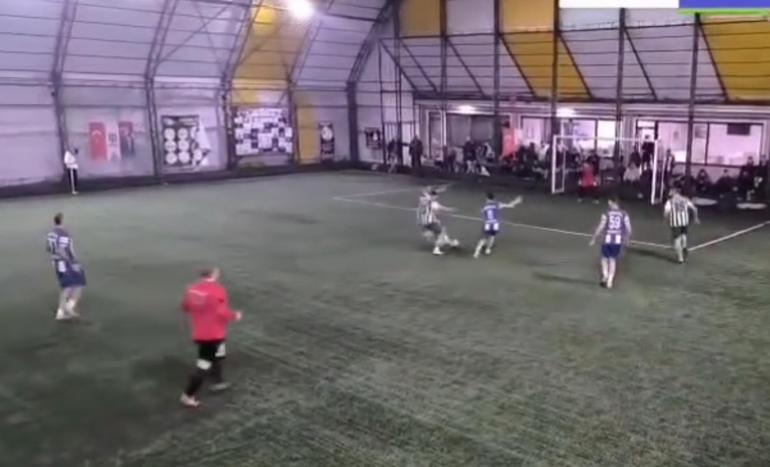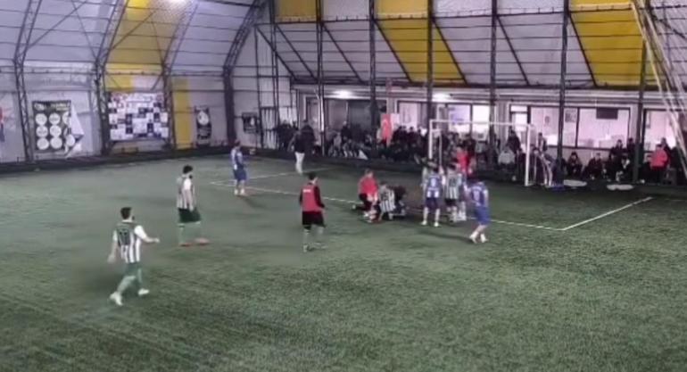 Yaşanan olay halı sahanın güvenlik kamerasına yansıdı.