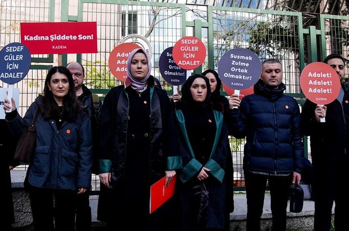 KADEM Avukatı Sinem Ermiş yaptığı açıklamada, “Bugün 7 Haziran 2024 tarihinde İstanbul Büyükçekmece'de vahşice katledilen Sedef Güler'in altıncı duruşmasını takip etmek ve adalet talebimizi yinelemek için bir kez daha toplandık. Sedef, 'iş bulma' vaadiyle kandırılmış; elleri koli bandıyla bağlanmış, ayaklarına zincir ve ağırlık takılarak bir halıya sarılıp denize atılmıştır. Biz bugün yalnızca bir cinayeti değil, görmezden gelinen bir toplumsal yarayı haykırıyoruz. Bugün, Bakırköy 4. Ağır Ceza Mahkemesi'nde görülen davada sanıklar Yavuz Güngör ve Fırat Baykara, 'çocuğa ya da beden veya ruh bakımından kendisini savunamayacak durumda bulunan kişiye karşı kasten öldürme' suçlamasıyla ağırlaştırılmış müebbet hapis istemiyle yargılanmaktadır. Sanıklardan biri, suçuna ortak ettiği bir başkası aracılığıyla yurt dışına kaçırılmış, ancak yapılan girişimler sonucu ülkeye iadesi sağlanmıştır. Olay yerinde bulunan deliller, maktule ait eşyalar ve sanıkların birlikte kullandığı ev, bu korkunç suçu tüm açıklığıyla ortaya koymaktadır. Kadınların yaşam hakkını savunmak, faillerin hak ettikleri cezaları almalarını sağlamak ve adaletin tesisi için buradayız. KADEM olarak bu davanın sonuna kadar takipçisiyiz. Kadınların yaşama hakkını savunmak yalnızca hukukçuların değil, her birey ve kurumun ortak sorumluluğudur. Biz, kadınların hayatlarını savunmaktan, adaletin takipçisi olmaktan ve tüm kadınlar özgürce yaşayana kadar bu mücadeleden vazgeçmeyeceğiz" dedi.