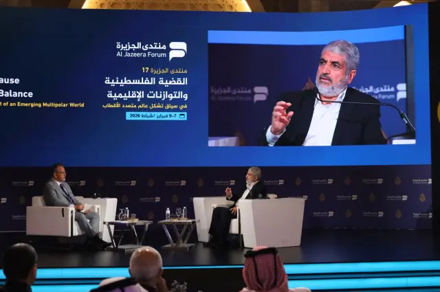 Hamas'ın üst düzey yöneticilerinden Halid Meşal, Katar'ın başkenti Doha'da düzenlenen konferansta konuşma yaptı.