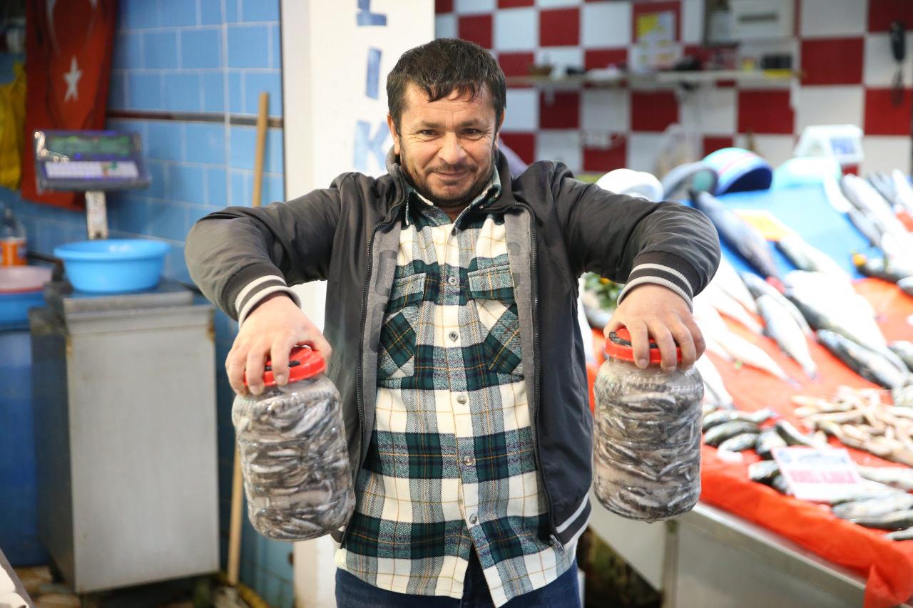 Balıkçı Tarık Arslantürk, AA muhabirine, hazırladıkları hamsi salamurasını satışa sunduklarını söyledi.