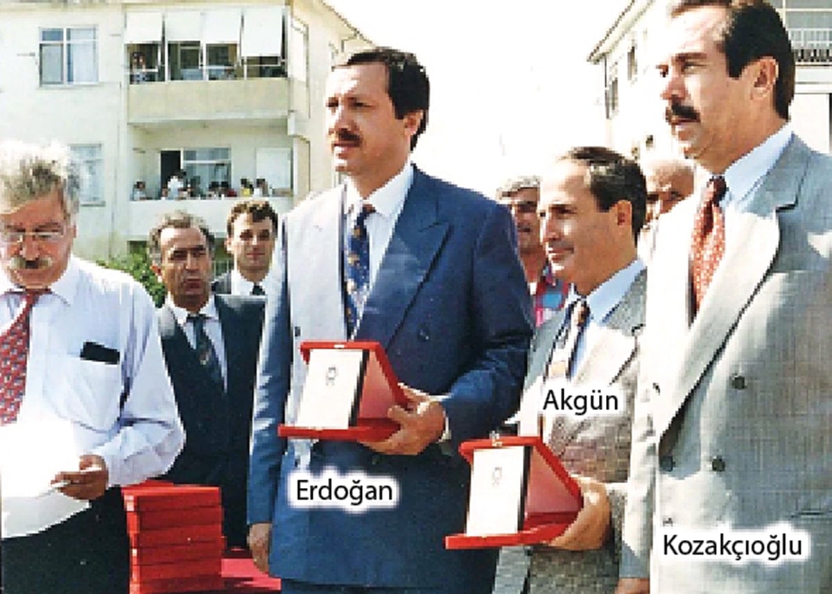 Büyükçekmece Belediye Başkanı Hasan Akgün, dönemin İstanbul Büyükşehir Belediye Başkanı Recep Tayyip Erdoğan ve dönemin İstanbul Valisi Hayri Kozakçıoğlu, yaklaşık 30 yıl önceki bir törende.
