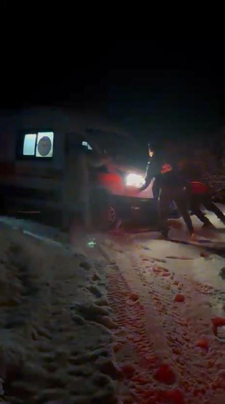 Durumu fark eden yoldan geçen bir kamyonet sürücüsü, ambulansı bulunduğu yerden çıkarmak için yardım etti. Yapılan çalışma sonrası ambulans yeniden yola çıkarıldı.