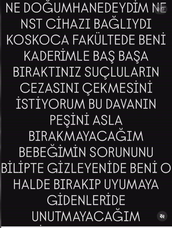 Sevk edildiği hastanede karşılaştığı tavırları da anlatan T.Z. "Oraya gittiğimde ise 'Neden geldin' gibi tavırlarla karşılaştım. Zaten yolda aramıştım orayı. Aradığımda da çok sert konuşmuşlardı. 'Başka yere git, yerimiz yok' dendi. Telefon kayıtlarında da mevcut bu. Çok sert bir şekilde muayenem yapıldı. Azarlamalara maruz kaldım. Ses çıkaramadım. Bir şey diyemedim çünkü çok kötü bir durumdaydım. Gebelikte tansiyonum çıktığı için o gece tansiyonum oldukça yüksekti, 17-18 civarındaydı. Pekiyi bir durumda değildim zaten. Daha sonra bankoya geçtiğimizde kaydım yapılırken kadın doğum servisinde normal bir odaya alınacaktım. Doğumhaneye değil, normal bir servise alınacaktım. Odaya alınırken sancılarım tuttu. Bana karın ağrısı dediler. Zaten açılmam vardı ama normal bir servis odasına alındım. NST'ye bağlanmadım. Sadece bir serum takıldı, bir ilaç takıldı. Bir ara kendimden geçtim. 'Sancıların geçecek, bekleyeceksin' dediler. Benim 2 dakikada bir sancılarım geliyordu. Çok kuvvetli bir şekilde bağırıyordum. 'Karın ağrısı, normal, bu doğum sancısı değil' dediler" ifadelerini kullandı.