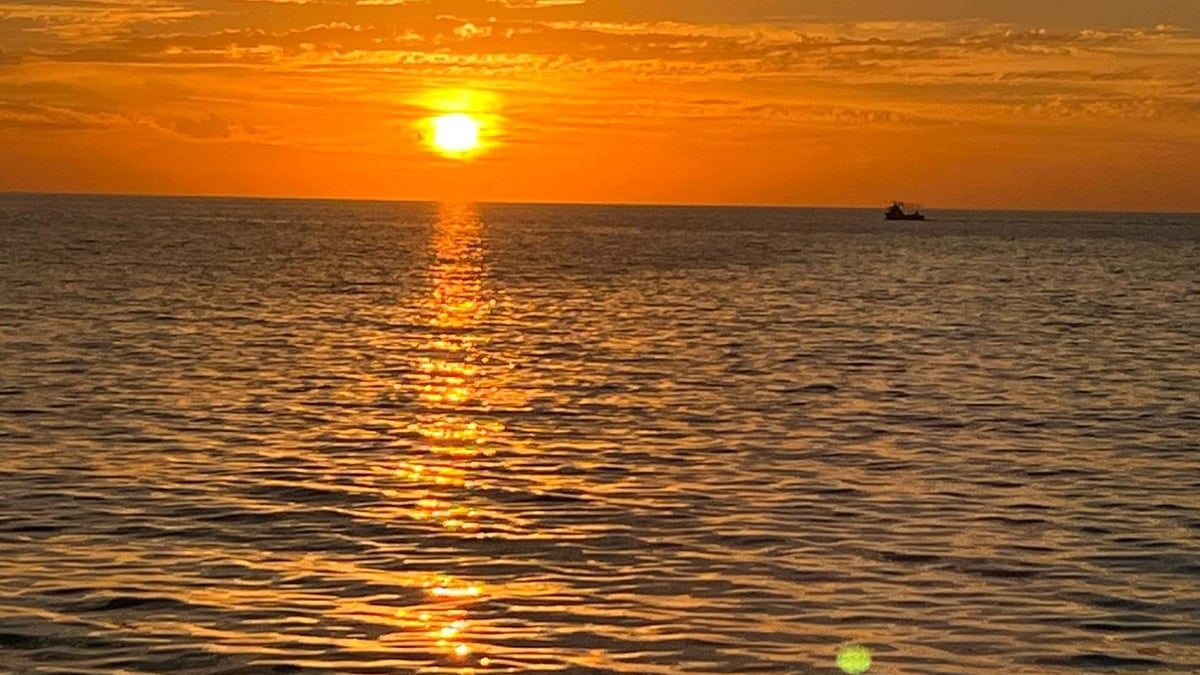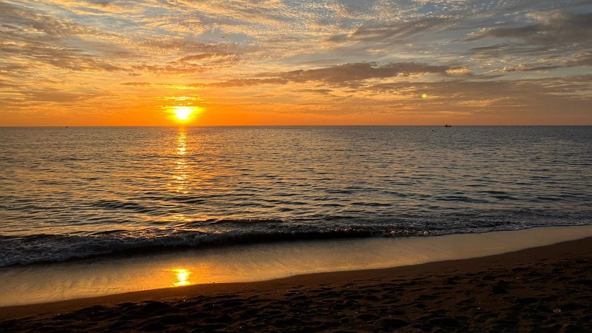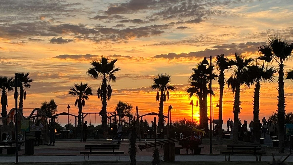 Sahilde gün batımının oluşturduğu eşsiz manzara, görenlerin ilgisini çekti. Denizin üzerindeki yansımalarla birlikte gün batımı görsel bir şölene dönüştü.