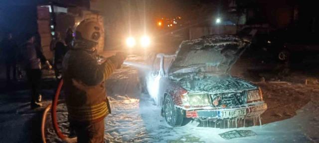 Hatay’da alevlere teslim olan otomobil kullanılamaz hale geldi