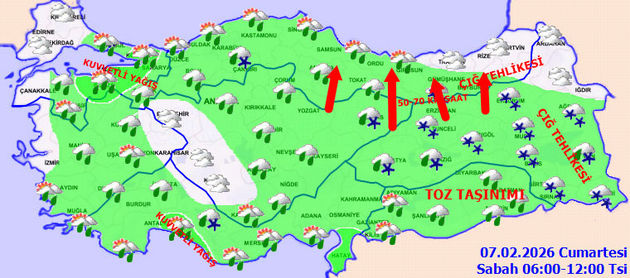 Doğu Karadeniz’in iç kesimlerinin yüksekleri ile Doğu Anadolu’nun doğusunda yüksek kar örtüsüne sahip eğimli kesimlerinde çığ ile kar erimesi tehlikesi bulunmaktadır. Güneydoğu Anadolu bölgesinde yer yer toz taşınımı beklenmektedir. Sıcaklıkların ülkemiz genelinde mevsim normallerinin üzerinde seyredeceği tahmin ediliyor.