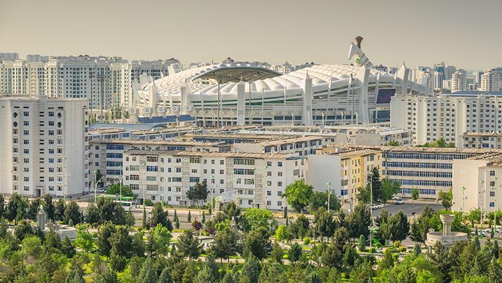 DÜNYANIN EN BEYAZ BAŞKENTİ AŞKABATStratejik konumuyla bölgede kritik bir noktada yer alan Türkmenistan, gücünü başkent Aşkabat’ın mermer dokusuyla sergiliyor. Dünyanın en yoğun beyaz mermer kaplı binasına ev sahipliği yapan şehir, politik bir gövde gösterisinin merkezine dönüşmüş durumda.