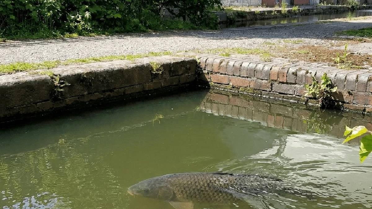 Kanal kenarında yürüyüş yapan Sarah Mather, suyun yüzeyinde duran “kütüğün” aniden hareket ettiğini görünce büyük bir şaşkınlık yaşadı. Yakından bakıldığında, cismin aslında olağanüstü büyüklükte bir sazan balığı olduğu anlaşıldı.