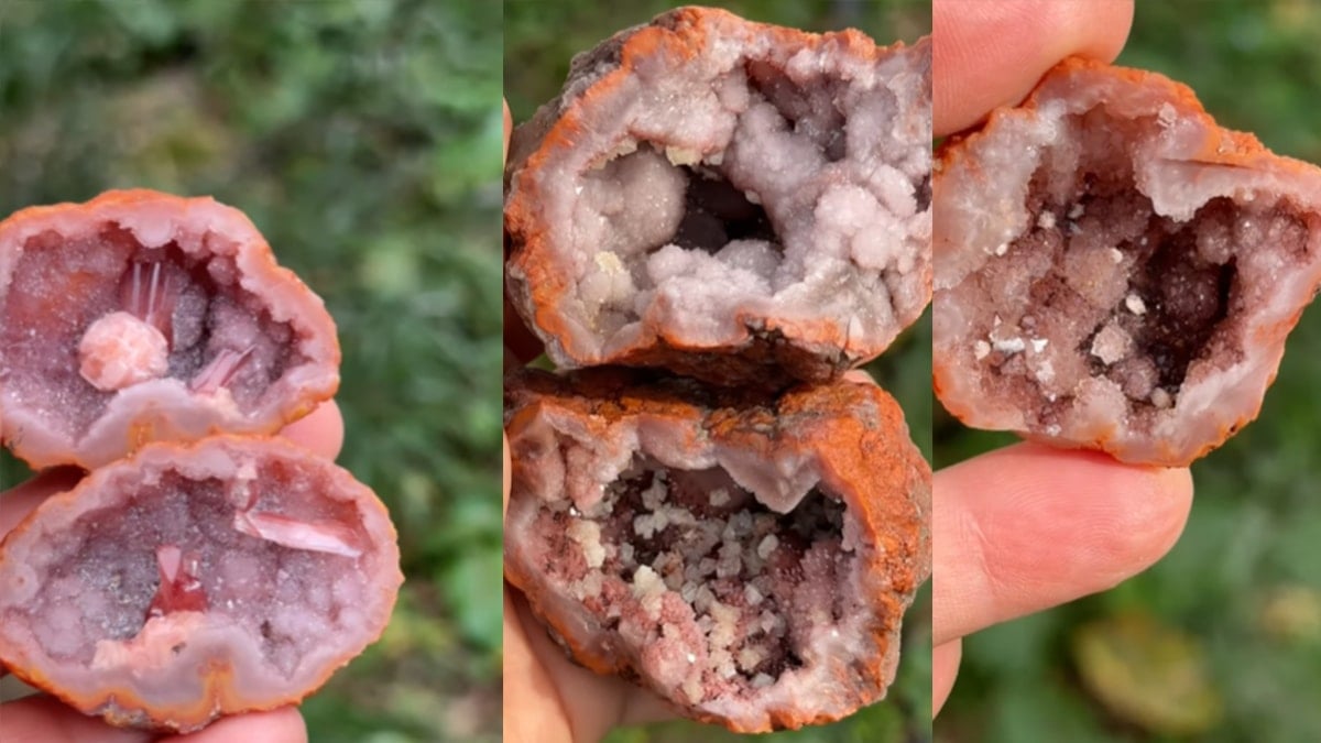 MADDİ VE GÖRSEL DEĞERİ VARSosyal medyada paylaşılan bir videoda, dış yüzeyi tamamen pürüzlü ve turuncu bir katmanla örtülü olan taşın içinden çıkan mor, pembe ve beyaz kristallerin yüksek kalite standartlarına sahip olduğu görülüyor. Bu tür oluşumlar, içerdikleri mineral yoğunluğuna, renk doygunluğuna ve kristal büyüklüğüne göre yarı değerli taş kategorisinde sınıflandırılıyor. Özellikle berraklığı yüksek olan parçalar, mücevherat sektöründe ve dekoratif objelerin yapımında ham madde olarak kullanılıyor.