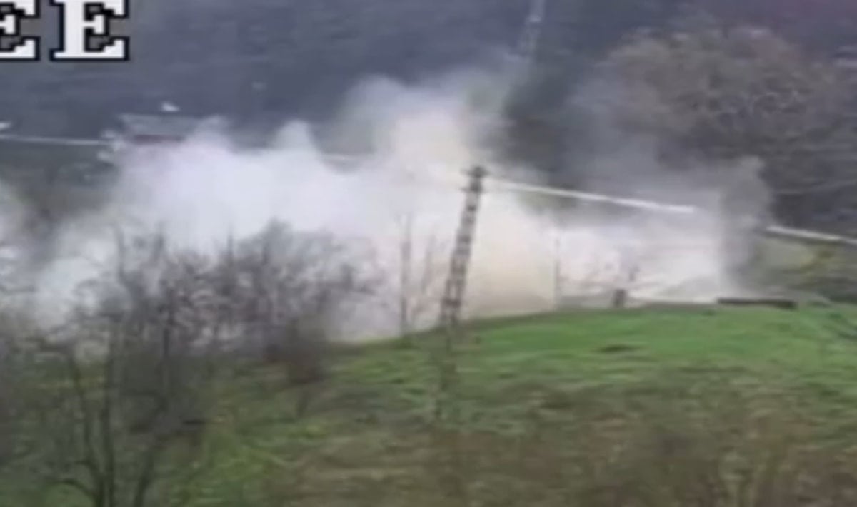 Boşaltılan bina bir süre sonra tamamen çökerken, o anlar güvenlik kamerasına yansıdı.