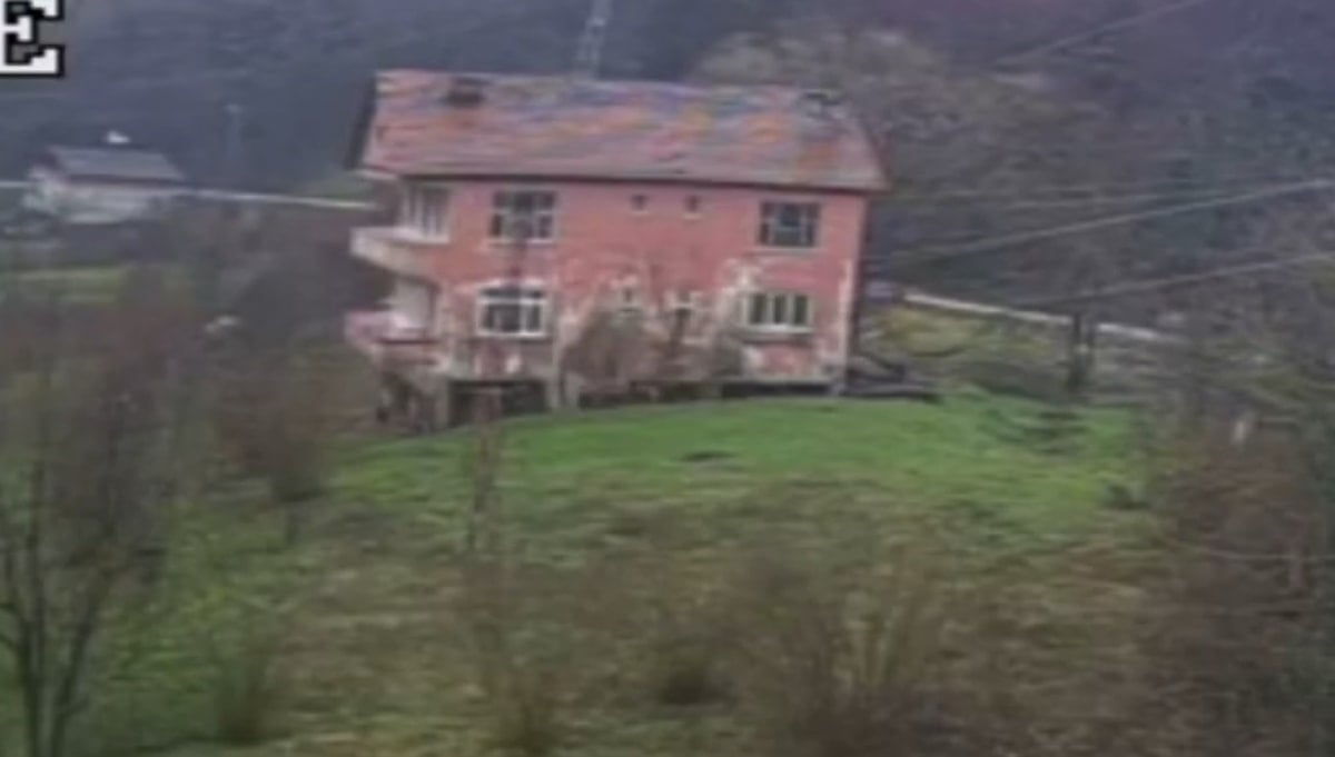 Kastamonu'nun Cide ilçesinde heyelan riski nedeniyle boşaltılan 2 katlı ev çöktü. O anlar çevredeki güvenlik kamerasına yansıdı.