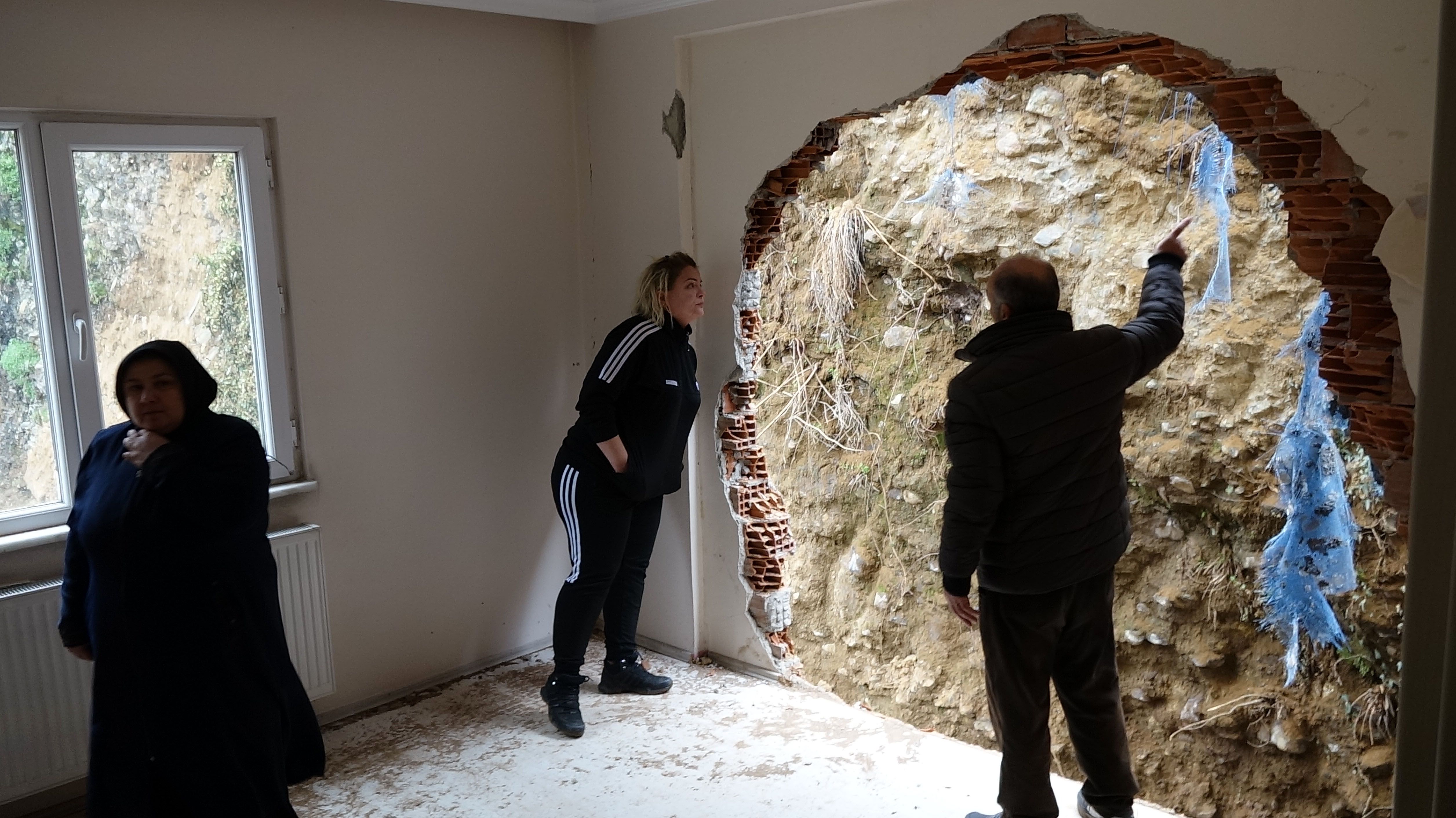 “DUVAR YAPILMASINI İSTİYORUZ”Binanın üçüncü katında bulunan evine giremeyen Ali Aktaş ise, “Heyelan olduktan sonra binamız tahliye edildi ve dün giriş izni verildi. Binanın güçlendirilmesi yarından itibaren başlayacakmış. Arka tarafla ilgili bir çalışma yapılmayacakmış. Biz oraya bir duvar yapılmasını istiyoruz çünkü tedirgin oluyoruz. Yetkililer yardımcı oldular geldiler ama arka taraftaki heyelanlı alanın açılmasını, temizlemesini istiyoruz. Yamaç evlerimize çok yakın bir daha aynı şeyleri yaşamak istemiyoruz. Küçük bir kaya parçası düşse bile binanın içerisinde geliyor. 1,2 ve 3’üncü katlara girişler şu an yasak. Yarından itibaren kolon güçlendirilmesi yapılacak ve bize de giriş izni verilecek ama biz yapıldıktan sonra arkadaki yamacın da güçlendirilip duvar yapılmasını istiyoruz. Aynı şeyleri yaşamayacağımız ne malum. Herkes tedirgin. Eşim ve çocuklarım gelmek istemiyorlar” sözlerini sarf etti.
