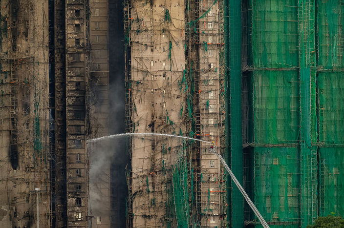Bakanlık sözcüsü, Hong Kong'un kuzeyindeki Wang Fuk Court'ta yaşayanların Eylül 2024'te bakım çalışmalarıyla ilgili endişelerini dile getirdiklerini, bu endişelerin arasında müteahhitlerin binaların etrafına kurdukları bambu iskeleleri örtmek için kullandıkları koruyucu yeşil ağların potansiyel yanıcılığı da olduğunu belirttiklerini açıkladı.