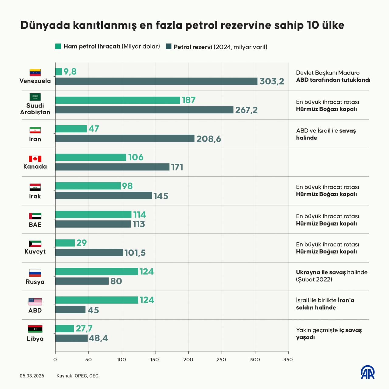 Hürmüz Boğazı'ndan geçen günlük yaklaşık 5 milyon varil petrol ürününün en büyük ihracatçısı konumunda ise 1,26 milyon varille BAE ve 1,04 milyon varille Suudi Arabistan öne çıkıyor.