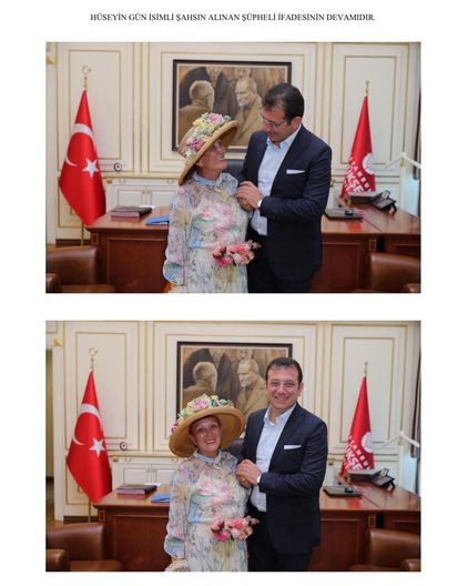 İMAMOĞLU’NU SEÇİMİ KAZANDIĞI İÇİN TEBRİK ETTİKEkrem İmamoğlu ile çekildiği fotoğraf sorulan Hüseyin Gün, “Necati Özkan’ın organize etmesiyle manevi annem ile birlikte Ekrem İmamoğlu’nu makamında ziyaret etmiştik. Ziyarette kendisini seçimi kazanması nedeniyle tebrik ettik. Kendisi de manevi annem ve bana hitaben ‘Kampanya sürecindeki yardımlarınızdan dolayı çok teşekkür ederim’ dedi. Bu görüşme yaklaşık olarak 10 dakika kadar sürdü ve ayrıldık. Devamı süreçte kendisi ile görüşmem olmadı. Buradan seçim sürecindeki desteklerimizden haberdar olduğundan emin oldum” dedi.