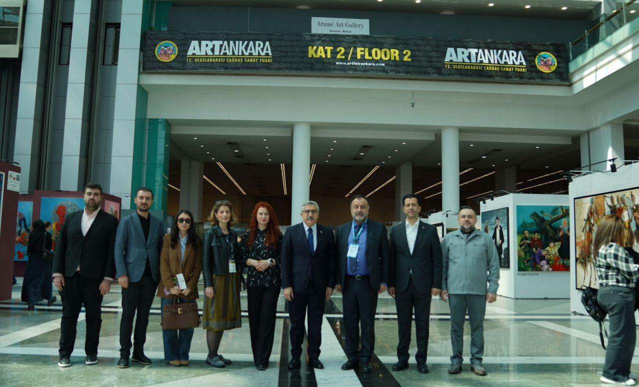 Yayman, ATO Congresium'da düzenlenen ArtAnkara 12. Uluslararası Çağdaş Sanat Fuarı'nı ziyaret ederek, eserler hakkında sanatçılardan bilgi aldı.