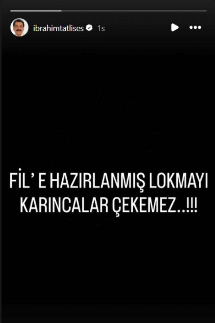 Gerginlik devam ederken İbrahim Tatlıses, sosyal medya hesabından yaptığı; "File hazırlanmış lokmayı karıncalar çekemez" paylaşımıyla dikkat çekti.