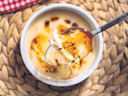 YAPILIŞI: Tavuk etlerini kuşbaşı doğrayarak haşlıyoruz. Kemikli ise kemiğinden sıyırarak ufak ufak didikliyoruz. Diğer taraftan çorbanın terbiyesini hazırlamaya başlıyoruz. Bunun için yoğurt ve unu iyice çırpıyoruz. Yumurta sarısını, az limon suyu ilave ederek karıştırıyoruz. Hazırladığımız yoğurtlu karışımı et suyunun içine yavaş yavaş karıştırarak ilave ediyoruz. Didiklenmiş etleri de ekleyerek kısık ateşte çorbayı birkaç dakika daha kaynatıyoruz. Son olarak çorbanın tuzunu da ilave ederek üzerine tereyağı ve pul biber ile hazırlamış olduğumuz sosu gezdirip servis ediyoruz.