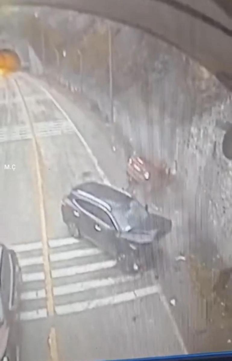 Tünelde iki otomobilin kafa kafaya çarpıştığı kaza kamerada