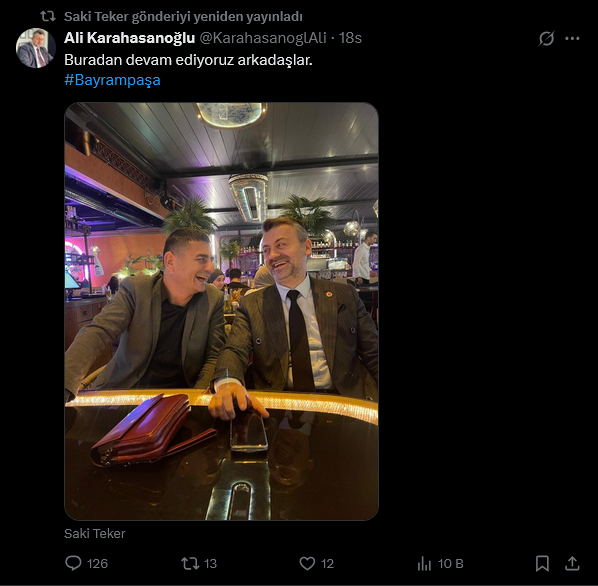 Ali Karahasanoğlu, gönderisinde Sadi Teker’i etiketleyerek şu notu düştü: “Buradan devam ediyoruz arkadaşlar.”